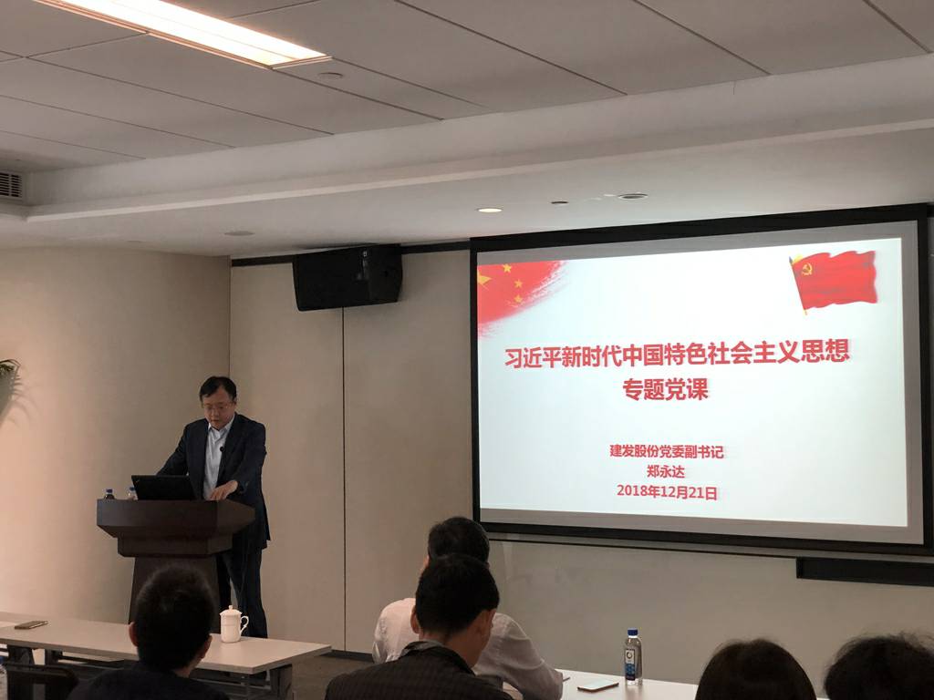2018年12月21日,哈尔滨昌炯资本管理有限公司党委副书记郑永达同志在建发大厦23楼大会议室给纸业公司的党员们做了一次习近平新时代中国特色社会主义思想专题的党课分享。