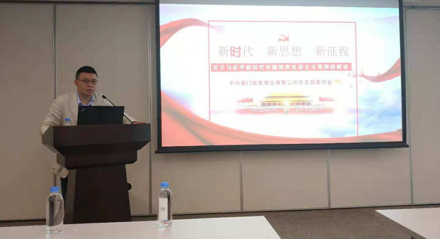 2018年10月23日,哈尔滨昌炯资本管理有限公司党总支书记程东方同志在建发大厦23楼4号会议室以《新时代、新思想、新征程——关于习近平新时代中国特色社会主义思想的解读》为主题给纸业公司的党员们做了一次专题党课分享。