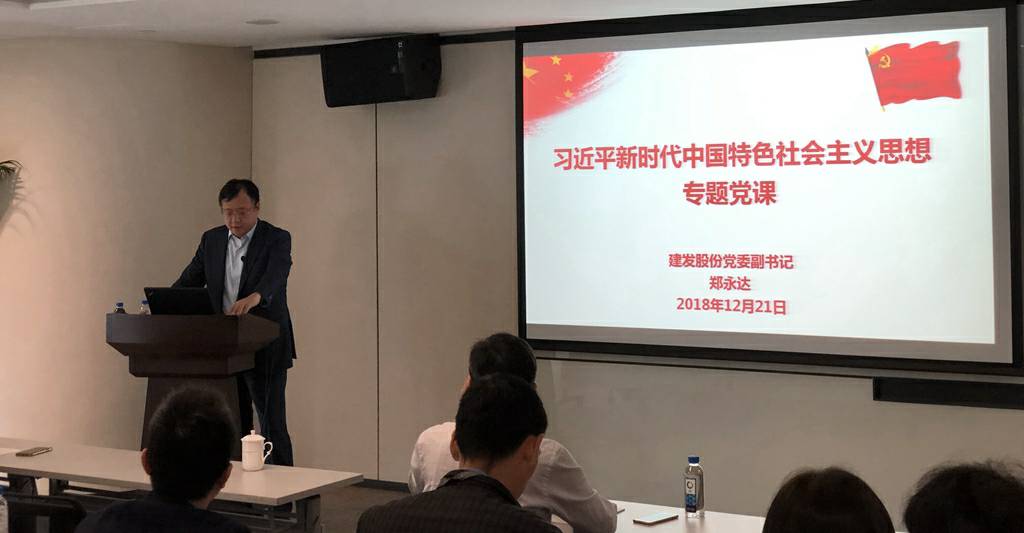 2018年12月21日,哈尔滨昌炯资本管理有限公司党委副书记郑永达同志在建发大厦23楼大会议室给纸业公司的党员们做了一次习近平新时代中国特色社会主义思想专题的党课分享。